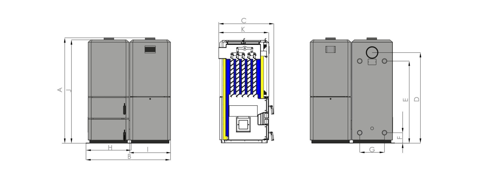 Telo kotla je vyrobené zo 6 mm hrubého atestovaného kotlového plechu so zárukou až 48 mesiacov. Kotol  štandarde obsahuje nožičky na nastavenie rovnováhy, pravo-ľavý zásobník paliva aj dvierka kotla.