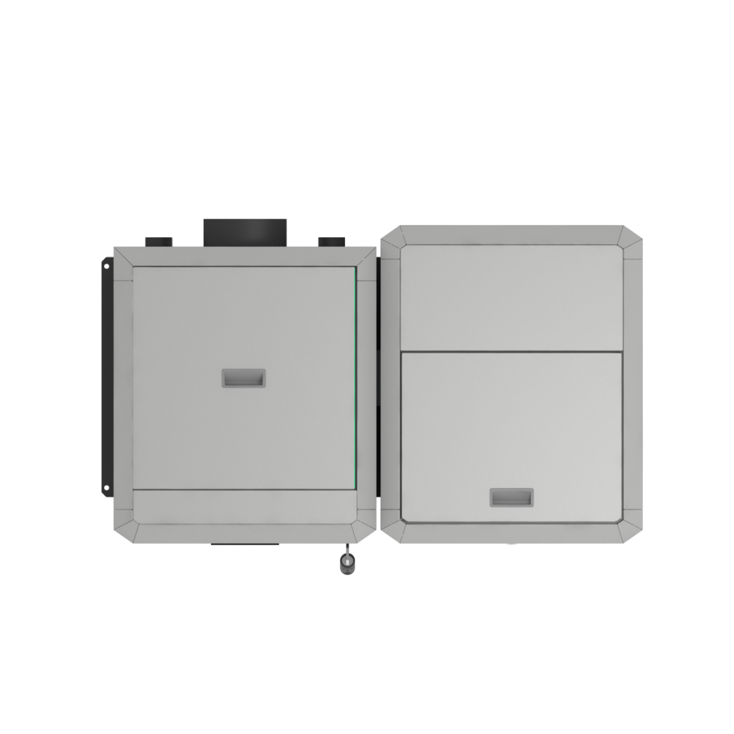 Hlavný vertikálny výmenník tepla je umiestnený v hornej časti kotla, čo minimalizuje pôdorys kotla a jej čistenie zabezpečujú špirály zavesné na automatizovanom váhatkovom systéme čistenia kotla.